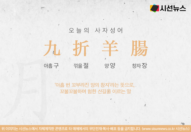 오늘의 사자성어 구절양장[九折羊腸]입니다.