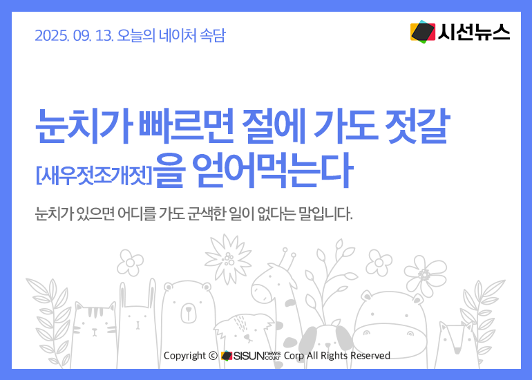 오늘의 네이처 속담은 <눈치가 빠르면 절에 가도 젓갈[새우젓조개젓]을 얻어먹는다>입니다.