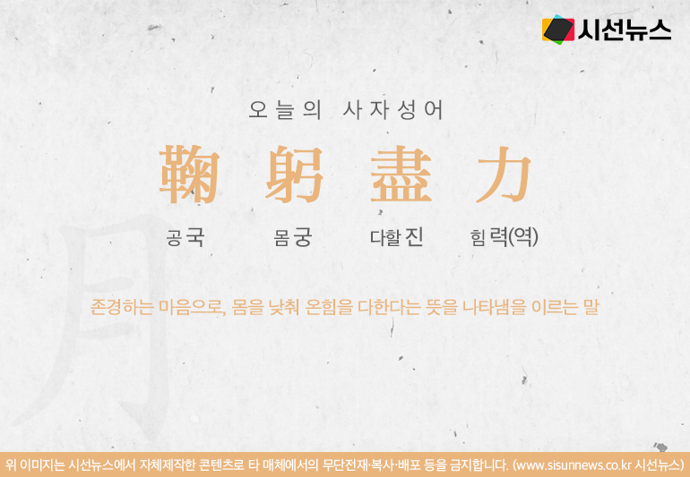 오늘의 사자성어 국궁진력[鞠躬盡力]입니다.