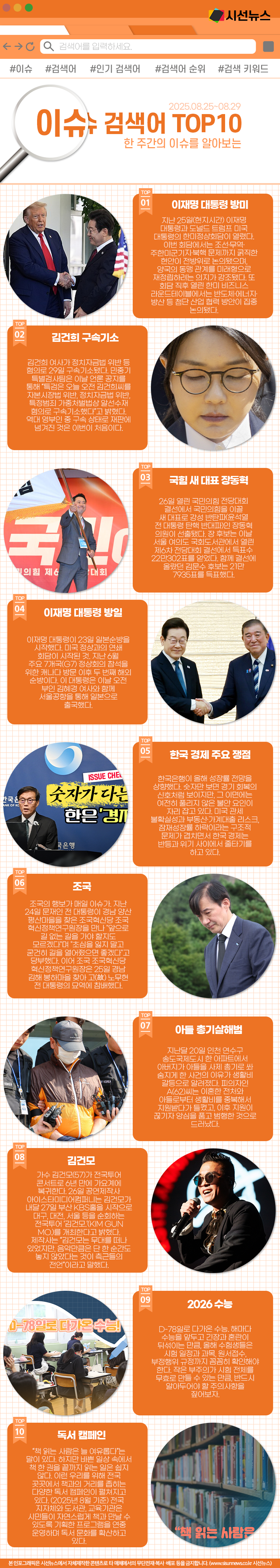 지난주 한주간의 이슈 Top10입니다. 지난주에는 어떤 키워드들이 이슈가 되었을까요?