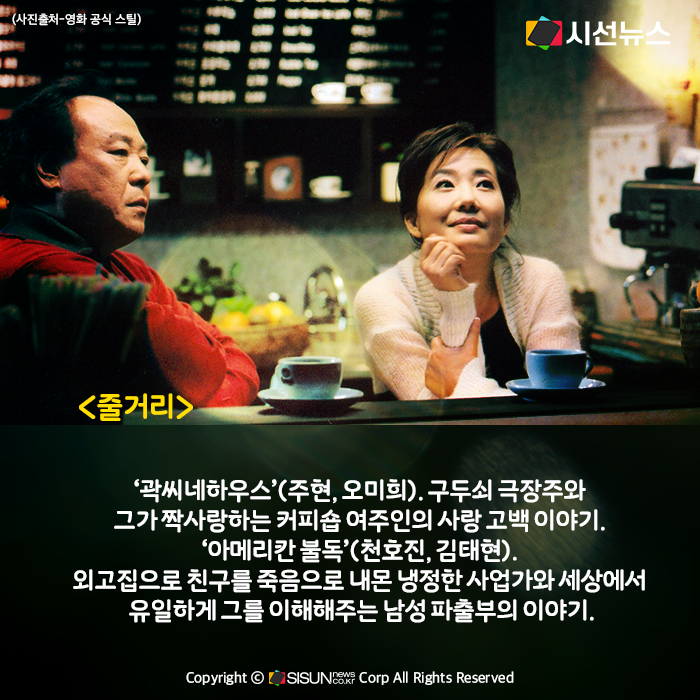 ‘곽씨네하우스’(주현, 오미희). 구두쇠 극장주와 그가 짝사랑하는 커피숍 여주인의 사랑 고백 이야기. ‘아메리칸 불독’(천호진, 김태현). 외고집으로 친구를 죽음으로 내몬 냉정한 사업가와 세상에서 유일하게 그를 이해해주는 남성 파출부의 이야기.