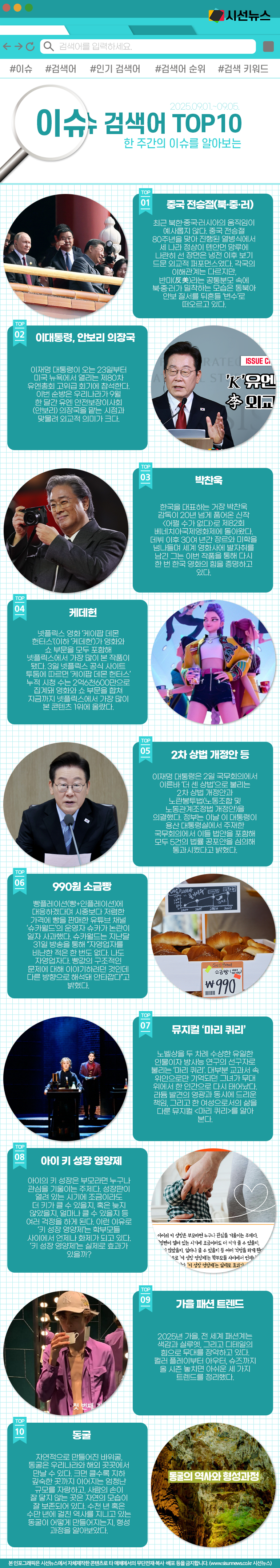 지난주 한주간의 이슈 Top10입니다. 지난주에는 어떤 키워드들이 이슈가 되었을까요?