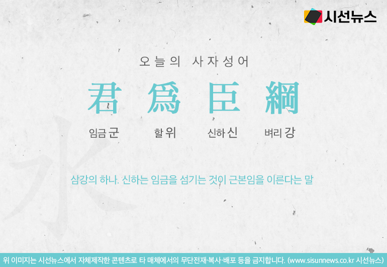 오늘의 사자성어 군위신강[君爲臣綱]입니다.