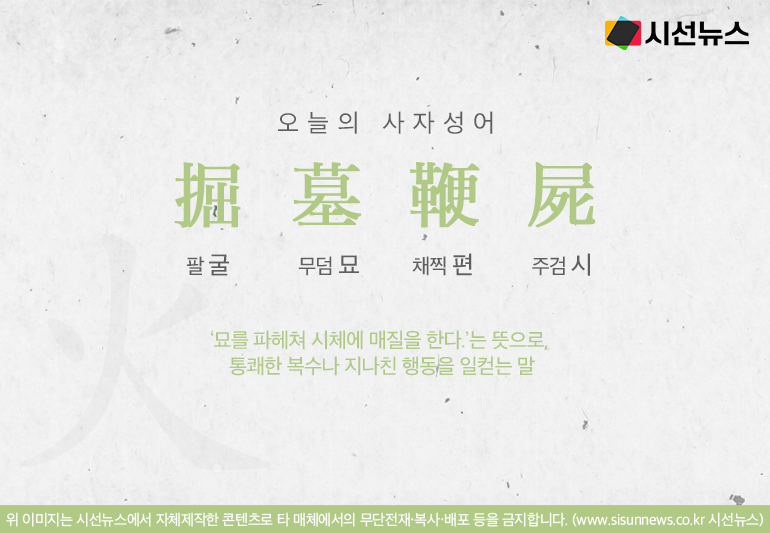 오늘의 사자성어 굴묘편시[掘墓鞭屍]입니다.