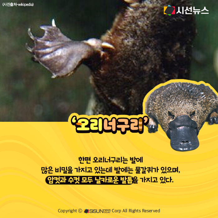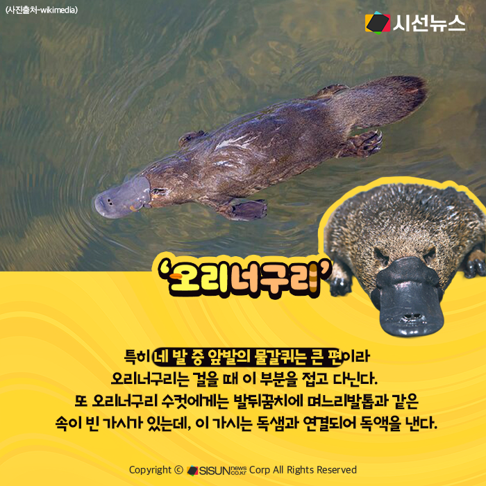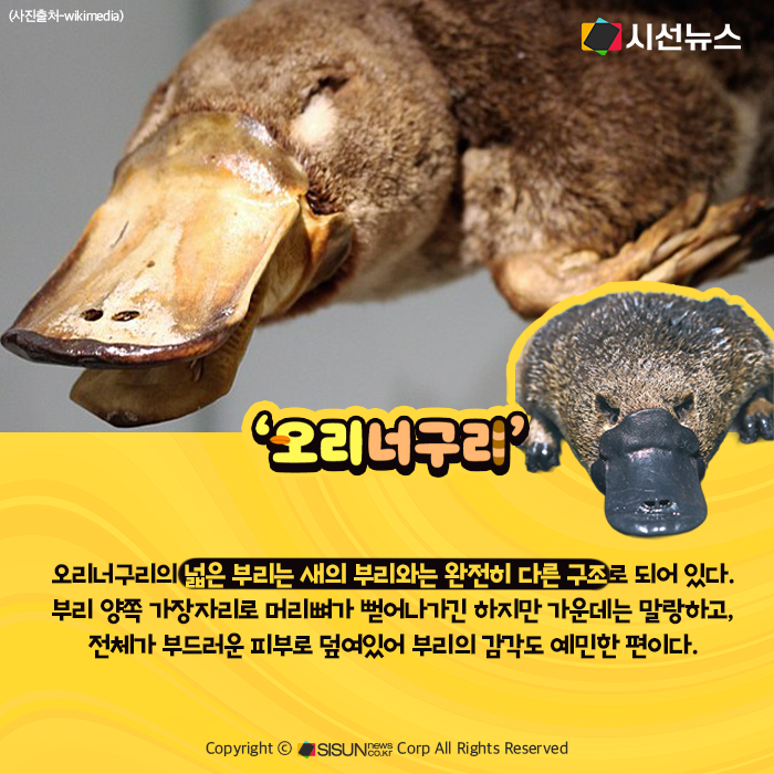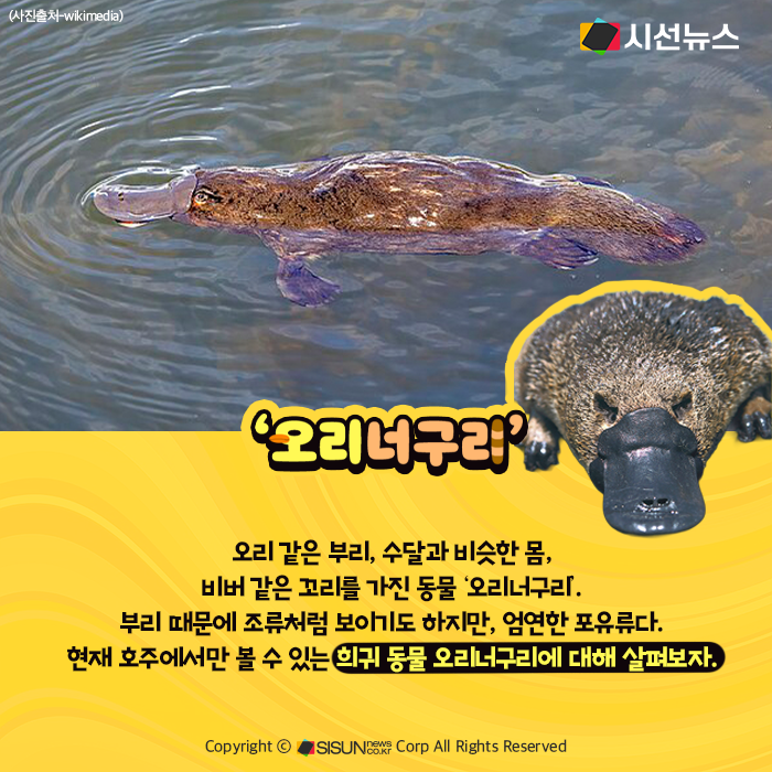 오리 같은 부리, 수달과 비슷한 몸, 비버 같은 꼬리를 가진 동물 ‘오리너구리’. 부리 때문에 조류처럼 보이기도 하지만, 엄연한 포유류다. 현재 호주에서만 볼 수 있는 희귀 동물 오리너구리에 대해 살펴보자.