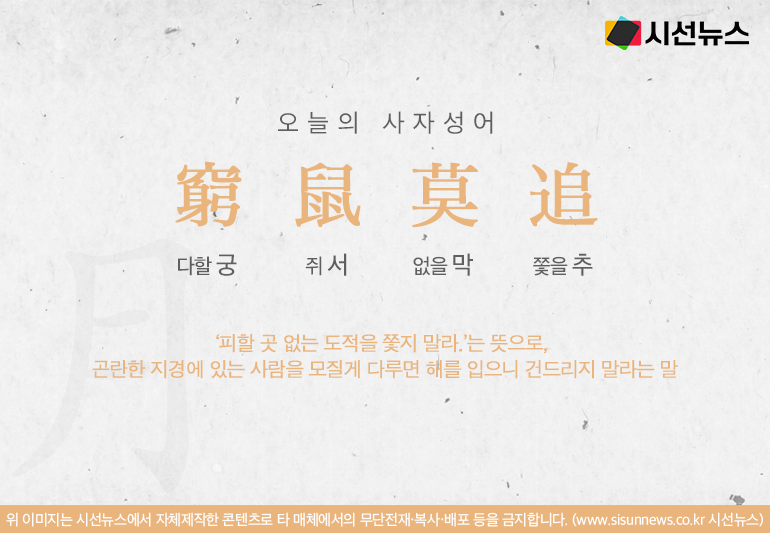 오늘의 사자성어 궁서막추[窮鼠莫追]입니다.