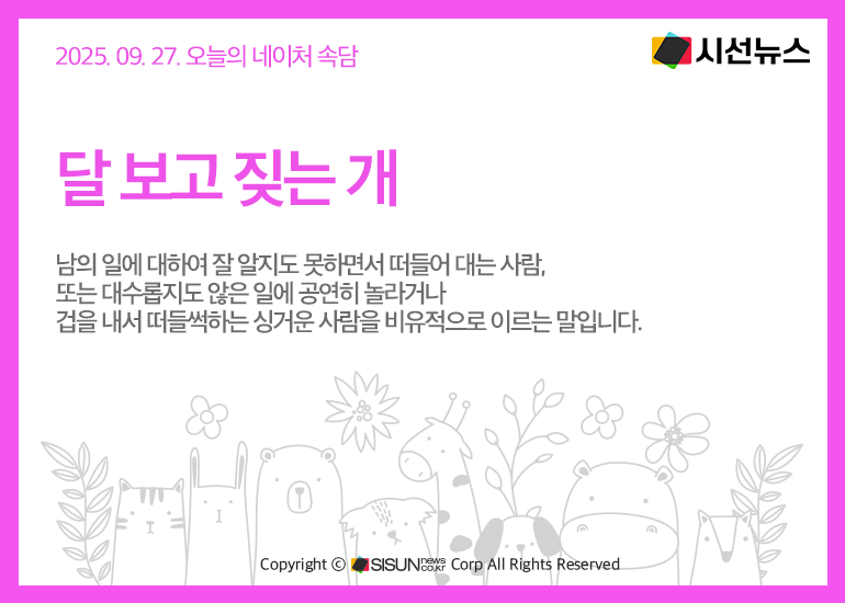 오늘의 네이처 속담은 <달 보고 짖는 개>입니다.