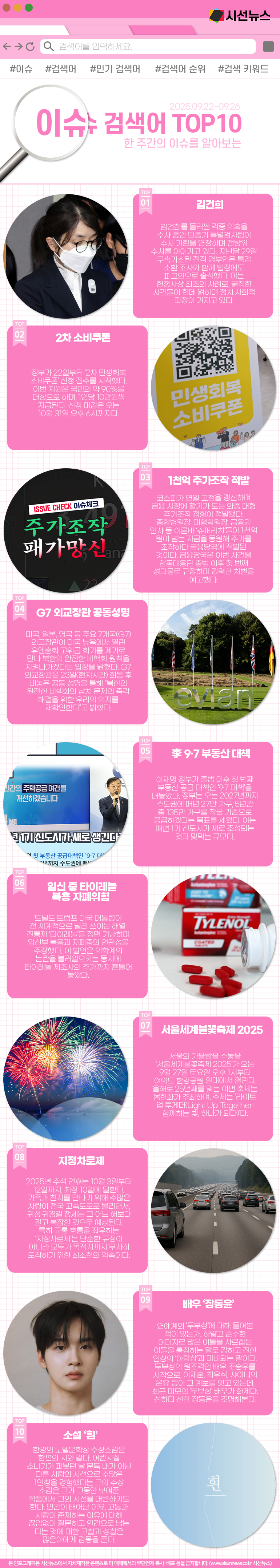 지난주 한주간의 이슈 Top10입니다. 지난주에는 어떤 키워드들이 이슈가 되었을까요?