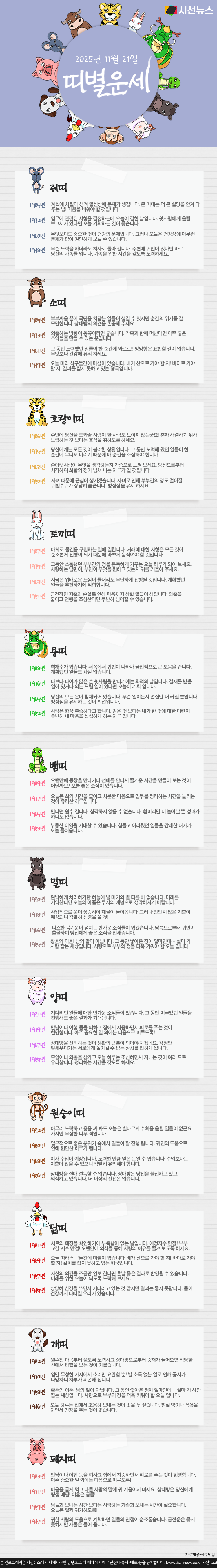 시선뉴스ㅣ2025년 11월 21일, 오늘의 띠별 운세입니다.