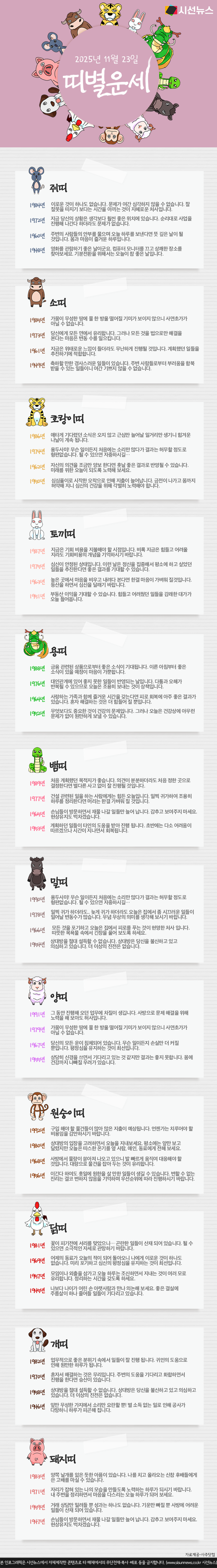 시선뉴스ㅣ2025년 11월 23일, 오늘의 띠별 운세입니다.