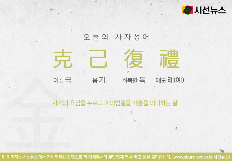 오늘의 사자성어 극기복례[克己復禮]입니다.