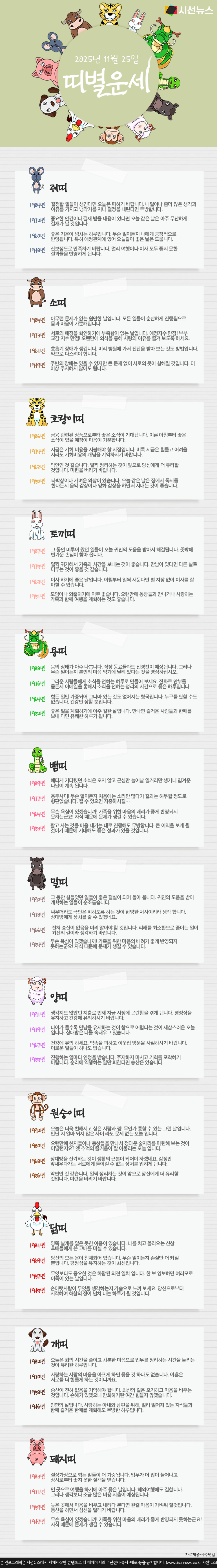 시선뉴스ㅣ2025년 11월 25일, 오늘의 띠별 운세입니다.