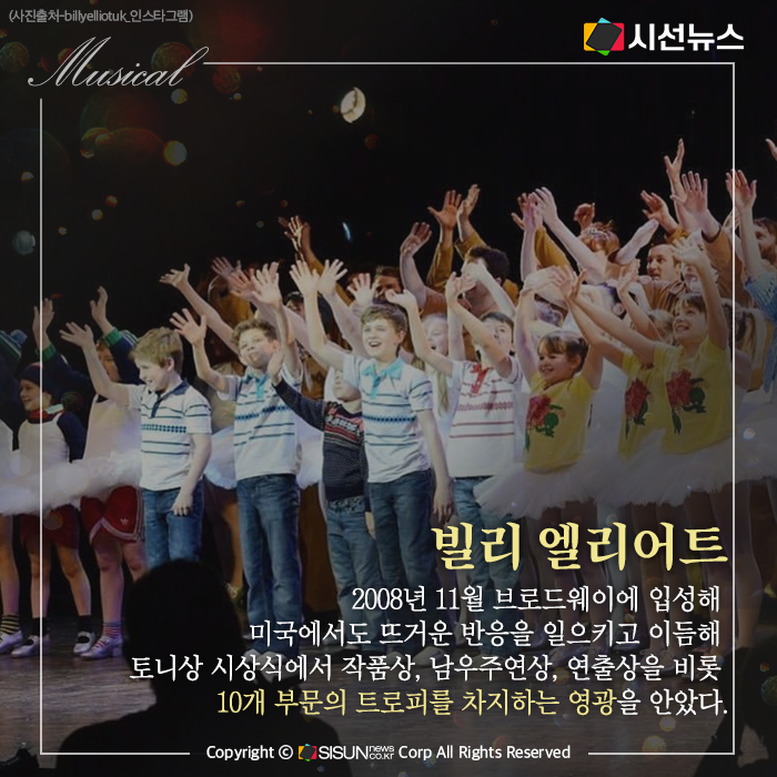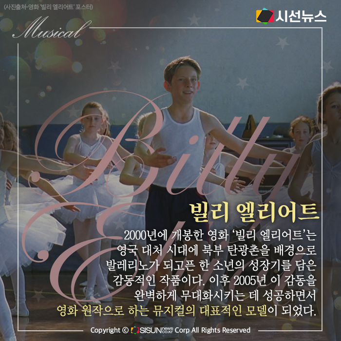 2000년에 개봉한 영화 ‘빌리 엘리어트’는 영국 대처 시대에 북부 탄광촌을 배경으로 발레리노가 되고픈 한 소년의 성장기를 담은 감동적인 작품이다. 이후 2005년 이 감동을 완벽하게 무대화시키는 데 성공하면서 영화 원작으로 하는 뮤지컬의 대표적인 모델이 되었다. 2008년 11월 브로드웨이에 입성해 미국에서도 뜨거운 반응을 일으키고 이듬해 토니상 시상식에서 작품상, 남우주연상, 연출상을 비롯 10개 부문의 트로피를 차지하는 영광을 안았다.