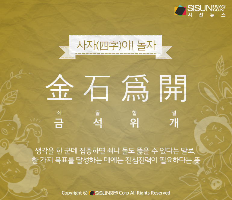 ‘사자(四字)야! 놀자’ ‘금석위개(金石爲開)’입니다.