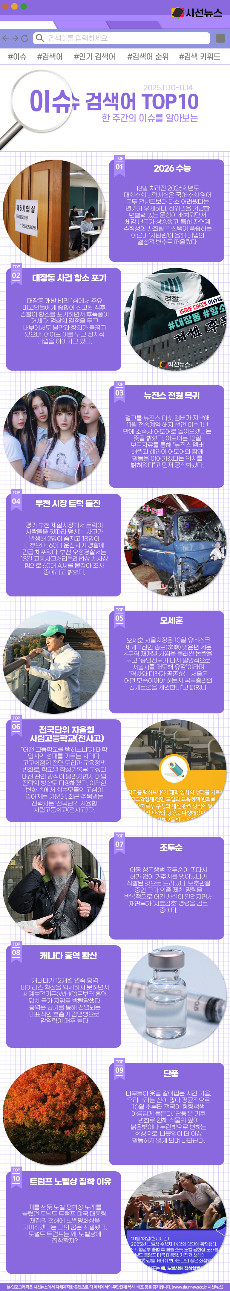 지난주 한주간의 이슈 Top10입니다. 지난주에는 어떤 키워드들이 이슈가 되었을까요?