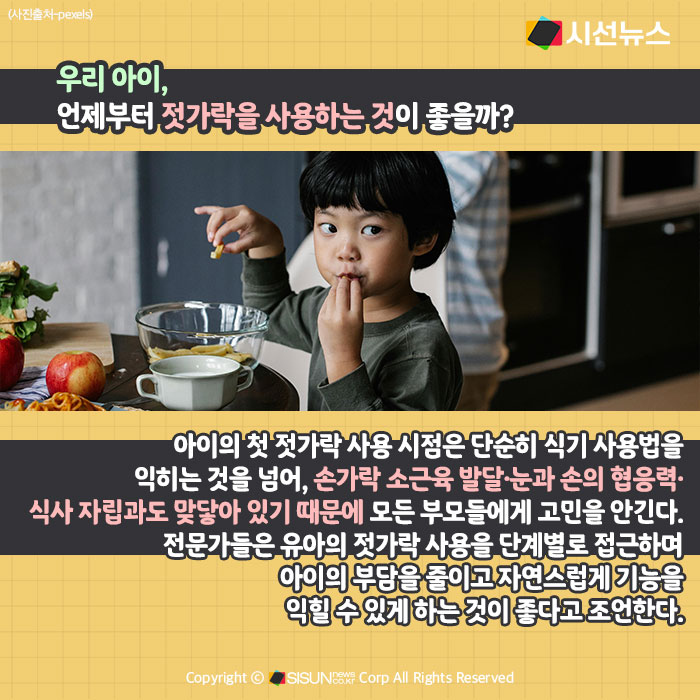 우리 아이, 언제부터 젓가락을 사용하는 것이 좋을까? 아이의 첫 젓가락 사용 시점은 단순히 식기 사용법을 익히는 것을 넘어, 손가락 소근육 발달·눈과 손의 협응력·식사 자립과도 맞닿아 있기 때문에 모든 부모들에게 고민을 안긴다. 전문가들은 유아의 젓가락 사용을 단계별로 접근하며 아이의 부담을 줄이고 자연스럽게 기능을 익힐 수 있게 하는 것이 좋다고 조언한다.
