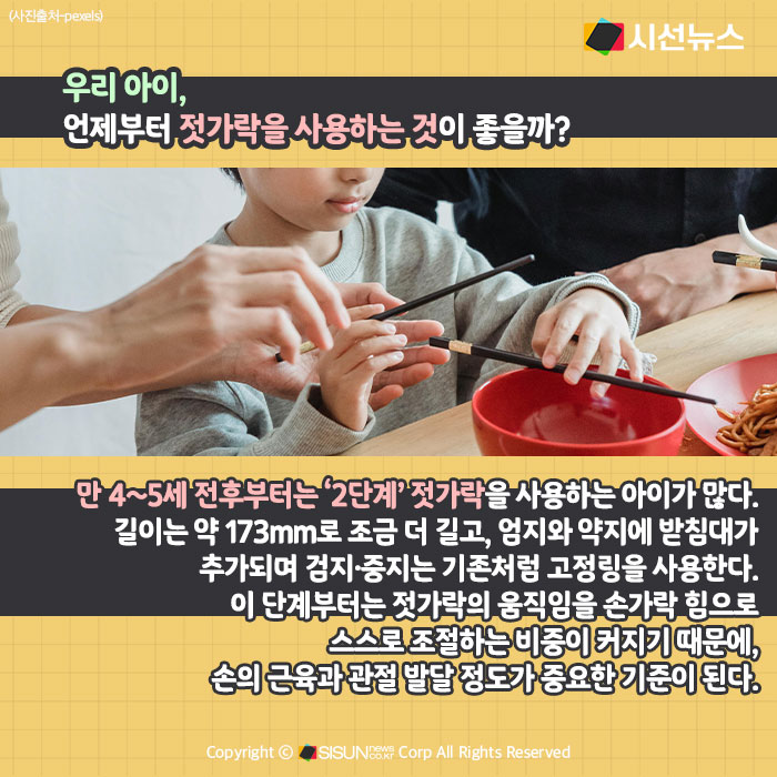 아이의 단계별 젓가락 사용은 절대적 나이보다는 ‘아이가 지금 준비됐는가’를 살펴보는 것이 더 중요하다. 단계별 젓가락을 활용해 점진적으로 난이도를 높여가되, 아이의 성장 속도와 손의 피로도, 식사 스트레스 여부를 세심하게 관찰하는 것이 가장 바람직한 접근이다.