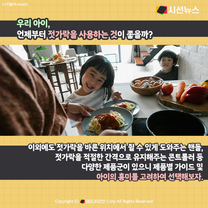 이외에도 젓가락을 바른 위치에서 쥘 수 있게 도와주는 핸들, 젓가락을 적절한 간격으로 유지해주는 콘트롤러 등 다양한 제품군이 있으니 제품별 가이드 및 아이의 흥미를 고려하여 선택해보자.