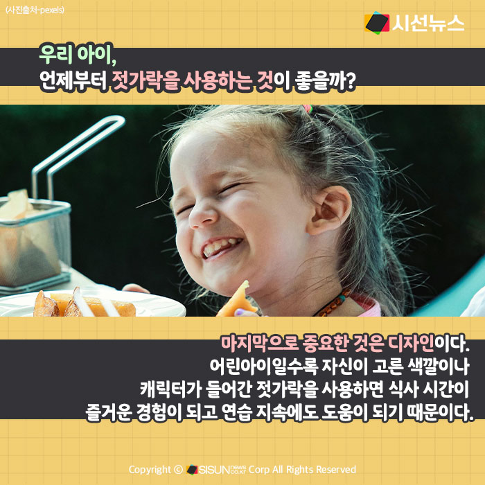 마지막으로 중요한 것은 디자인이다. 어린아이일수록 자신이 고른 색깔이나 캐릭터가 들어간 젓가락을 사용하면 식사 시간이 즐거운 경험이 되고 연습 지속에도 도움이 되기 때문이다.