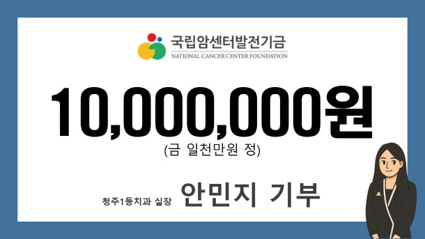 청주일등치과 안민지 실장이 지난 11월 20일, 국립암센터발전기금에 1천만 원을 기부하며 지역 의료계와 공공의료 발전에 뜻깊은 발걸음을 내디뎠다. 이번 기부는 암 환자들의 치료 환경 개선과 연구 지원을 위한 용도로 사용될 예정이다.