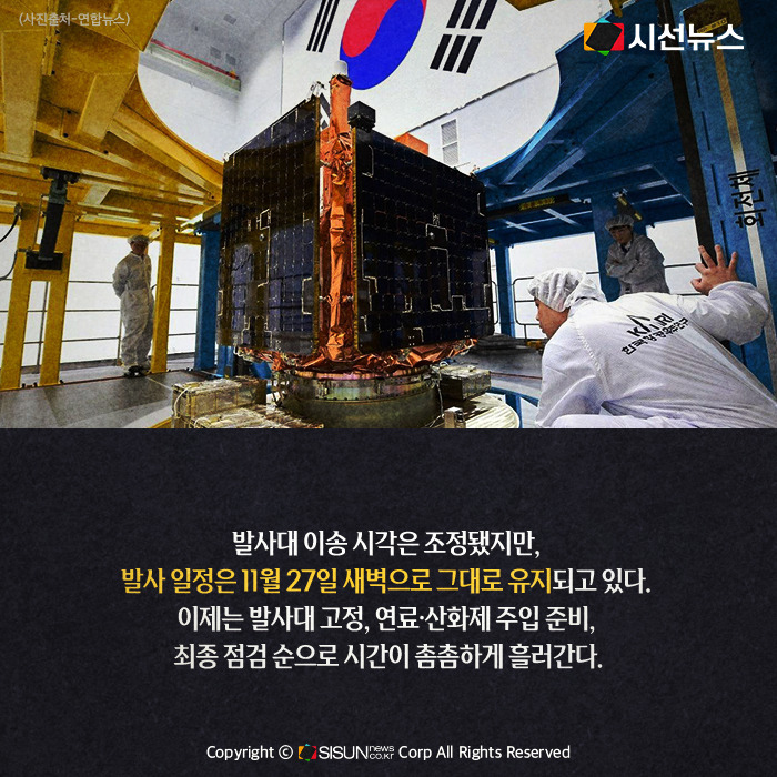 발사대 이송 시각은 조정됐지만, 발사 일정은 11월 27일 새벽으로 그대로 유지되고 있다. 이제는 발사대 고정, 연료·산화제 주입 준비, 최종 점검 순으로 시간이 촘촘하게 흘러간다.