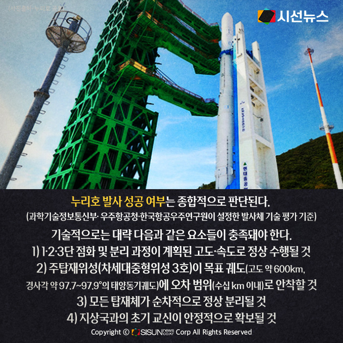 누리호 발사 성공 여부는 과학기술정보통신부·우주항공청·한국항공우주연구원이 설정한 발사체 기술 평가 기준에 따라 종합적으로 판단된다. 기술적으로는 대략 다음과 같은 요소들이 충족돼야 한다.