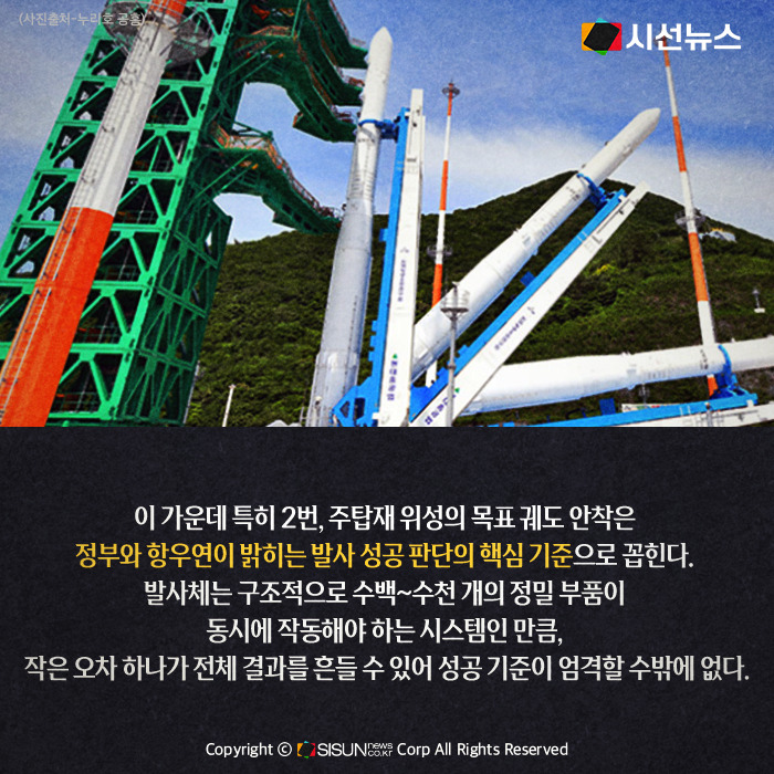 이 가운데 특히 2번, 주탑재 위성의 목표 궤도 안착은 정부와 항우연이 밝히는 발사 성공 판단의 핵심 기준으로 꼽힌다. 발사체는 구조적으로 수백~수천 개의 정밀 부품이 동시에 작동해야 하는 시스템인 만큼, 작은 오차 하나가 전체 결과를 흔들 수 있어 성공 기준이 엄격할 수밖에 없다.